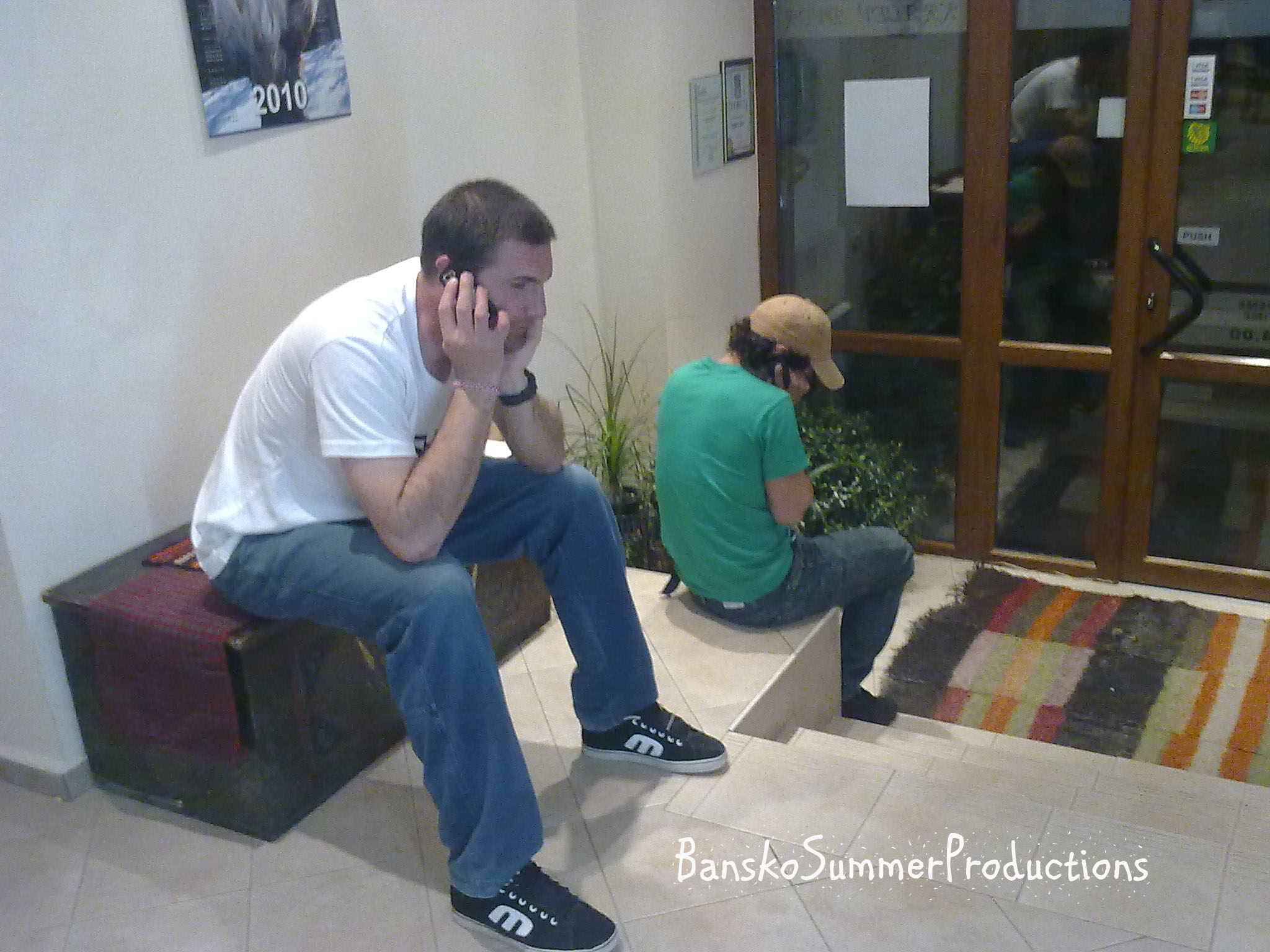 Niki Metal and Kirtsata on the phone. Bansko 2010